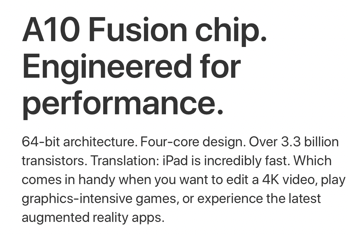 So whats new with this years iPad? The biggest update with this new iPad is that it will work with Apple's $99 for consumers or $89 for educator and students Apple pencil. This is big news since its is the first Apple device other than the Apple iPad Pro line to have Apple Pencil functionality. The next upgrade came to the internal processor, seeing a bump to the Appel A10 Fusion chip. A nice spec bump that will help with the fluidity and functionally of iOS 11 on iPad. Lastly, the iPad will come in a new color Rose Gold. Rounding out three total color options: Space Gray, Silver, and Rose Gold.
